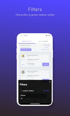 GoPool का उपयोग करना बेहद सरल है। अपनी यात्रा शुरू करने के लिए, अपना विस्तृत प्रोफाइल बनाएँ जिसमें नाम, लिंग, आयु, प्रोफ़ाइल चित्र, कार्य ईमेल और लिंक्डइन कनेक्शन शामिल हों, जो भरोसेमंद समुदाय का आधार बनते हैं। एक बार सेट हो जाने पर, अपने गंतव्य के लिए अन्य यात्रियों की खोज करें, चाहे आप हवाई अड्डे से आ रहे हों या वहाँ जा रहे हों। GoPool आपको कॉल या चैट के माध्यम से समन्वय स्थापित करने की अनुमति देता है, जिससे आप कई स्टॉप वाली साझा कैब भी बुक कर सकते हैं और किराए को आसानी से विभाजित कर सकते हैं। अतिरिक्त सुरक्षा और विश्वास के लिए, हम आधार सत्यापन प्रदान करते हैं, जिससे सत्यापित प्रोफ़ाइल को नीले टिक से चिह्नित किया जाता है। GoPool बेंगलुरु, हैदराबाद और गोवा जैसे प्रमुख शहरों में आपकी सेवा के लिए उपलब्ध है।